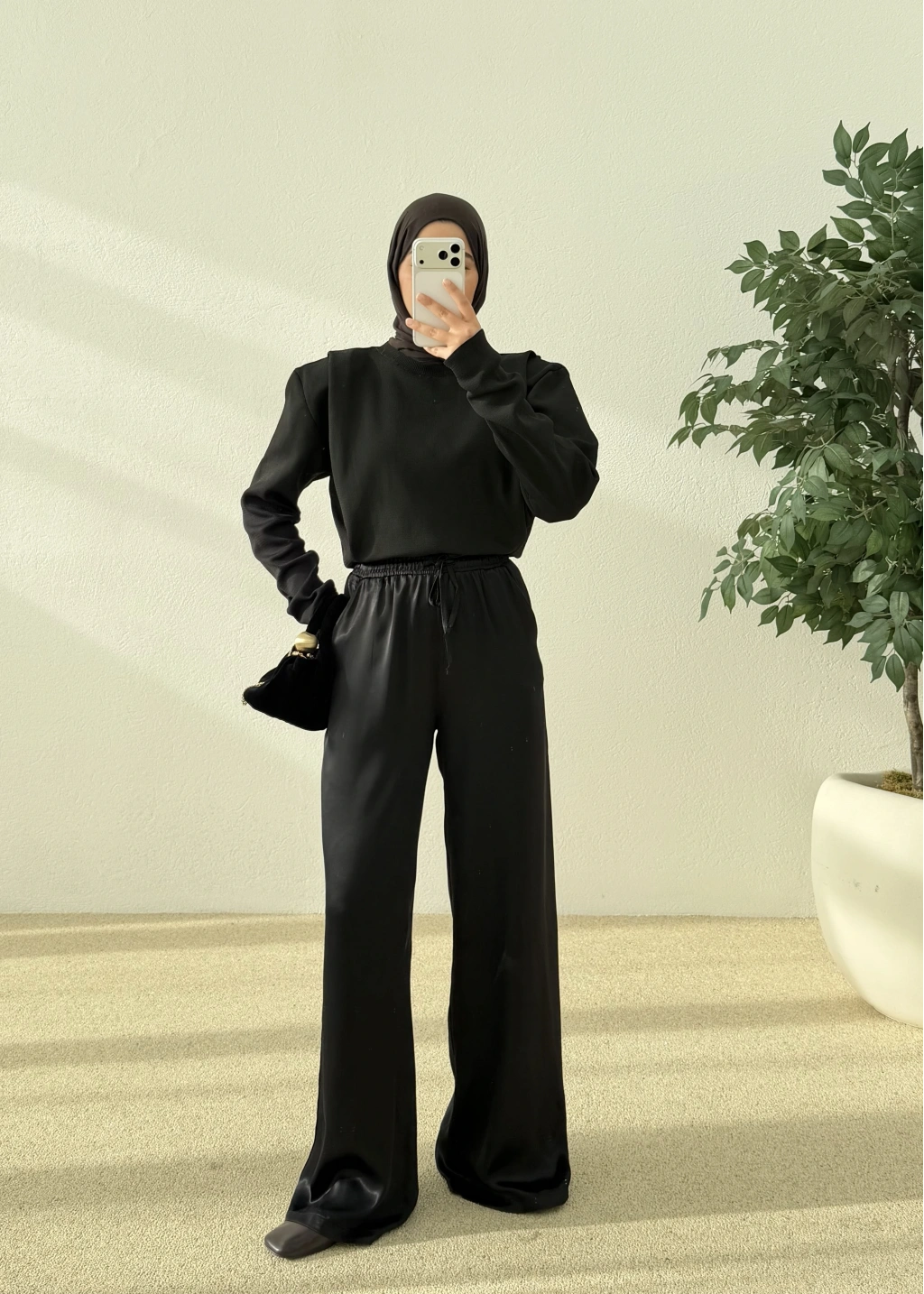Pol Saten Kemerli Palazzo Siyah