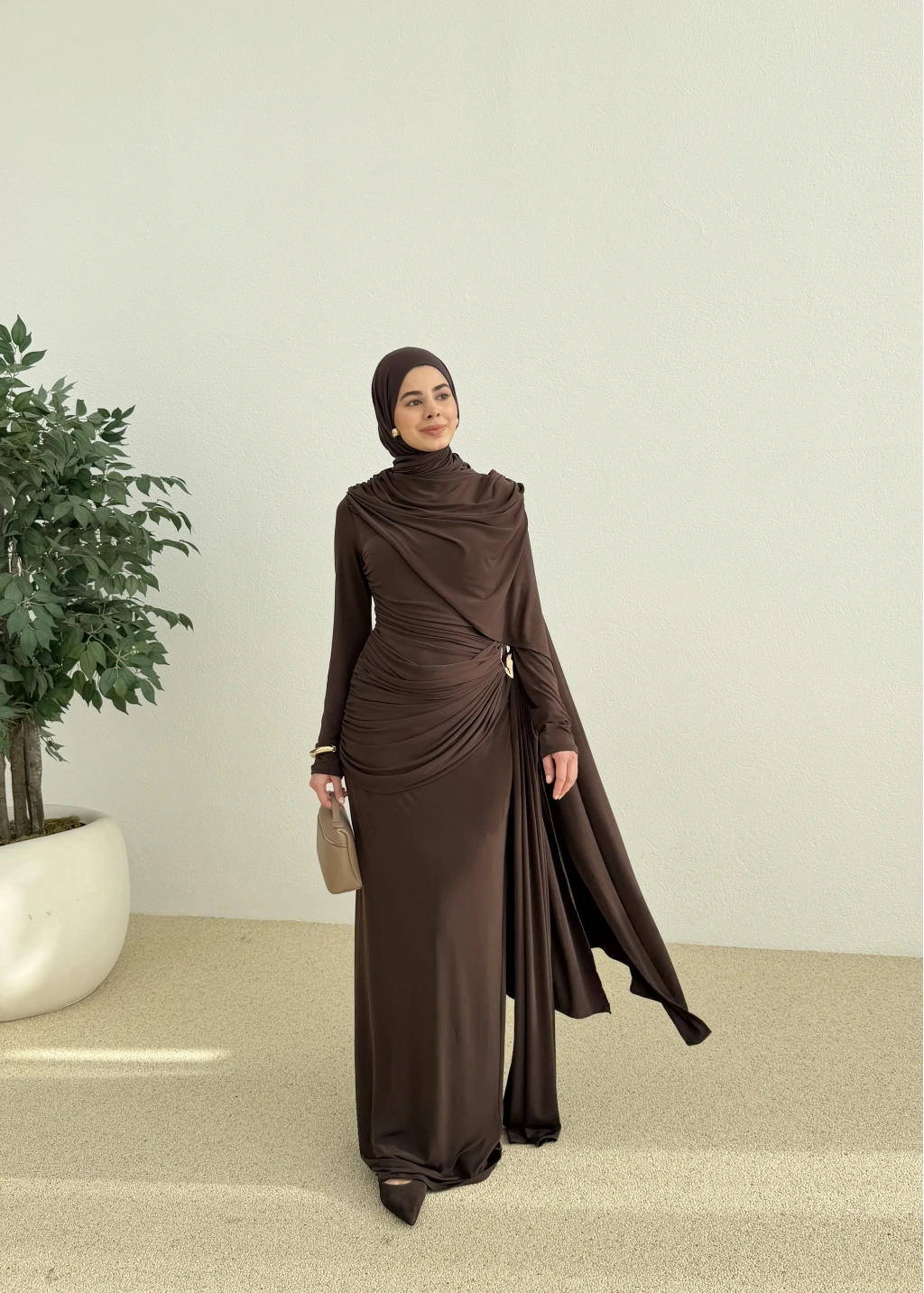 DÖKÜMLÜ KREP PALAZZO KOYU acı kahve