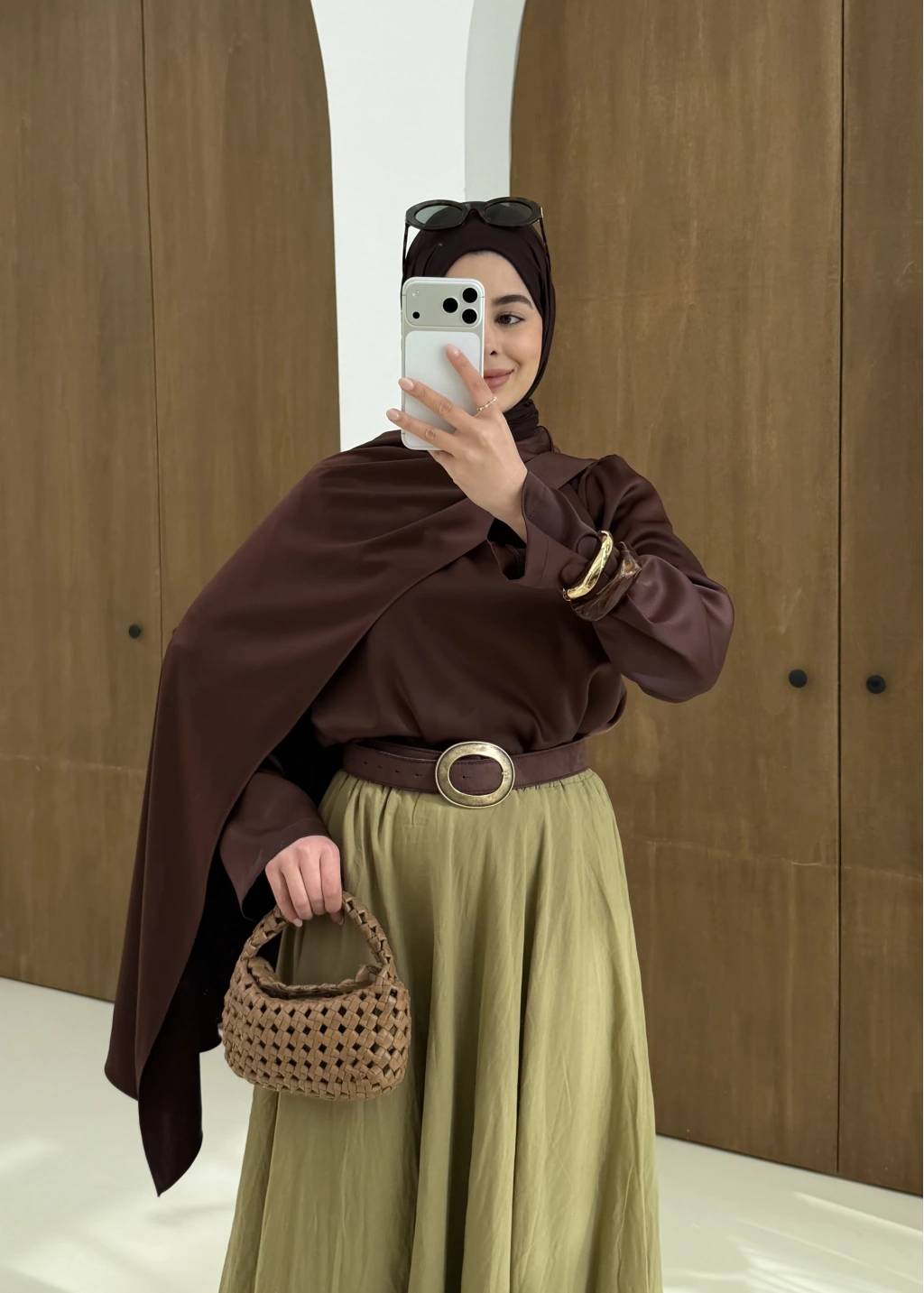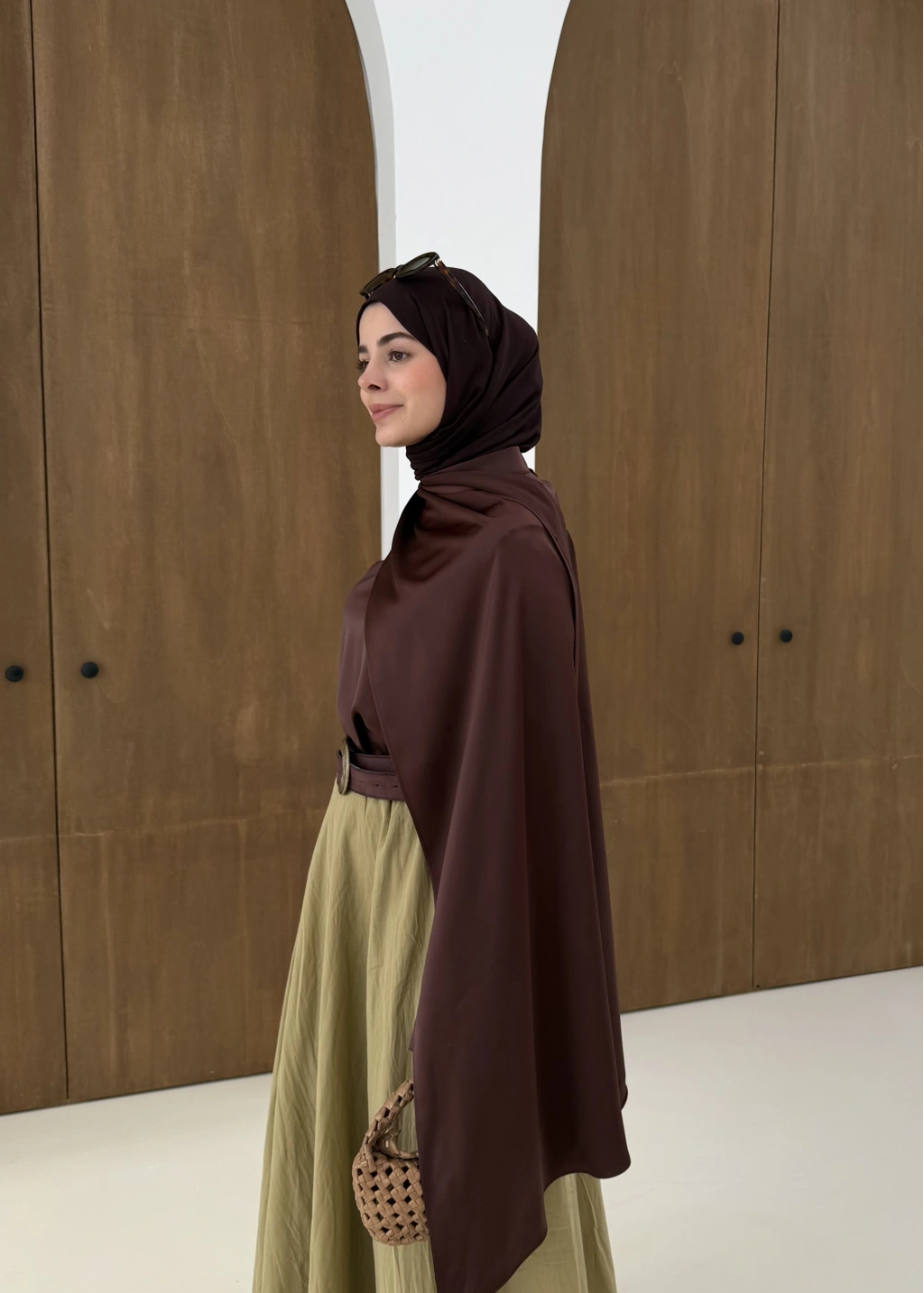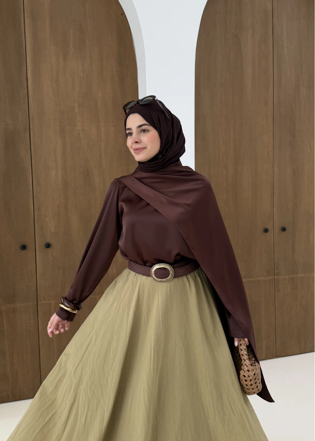 Saten Arabic Bluz Kahve
