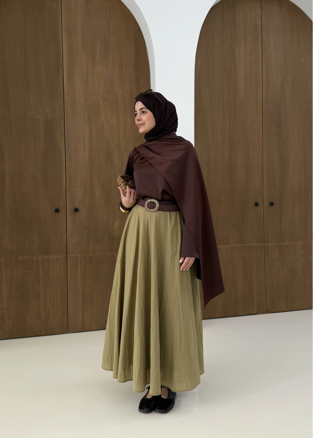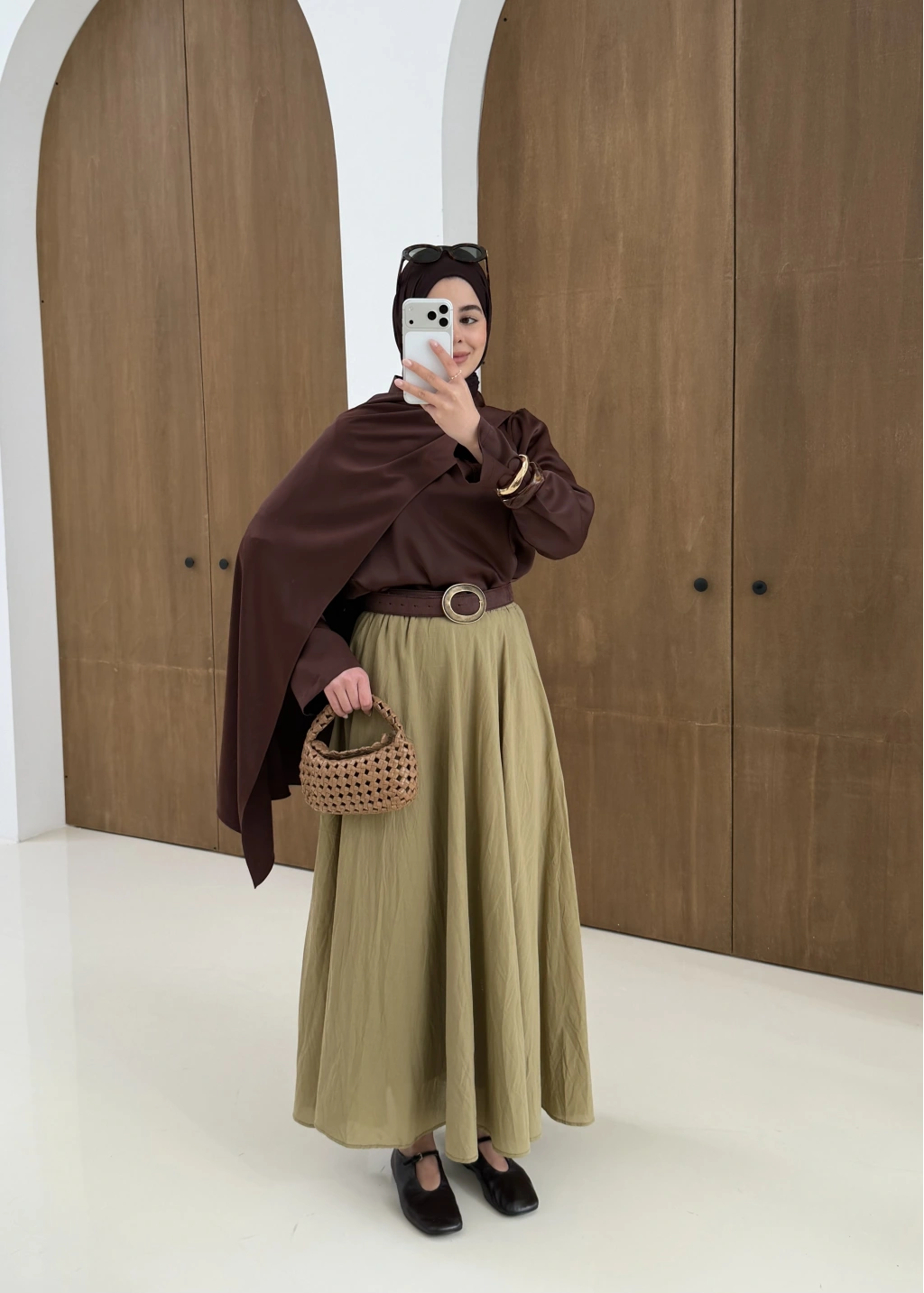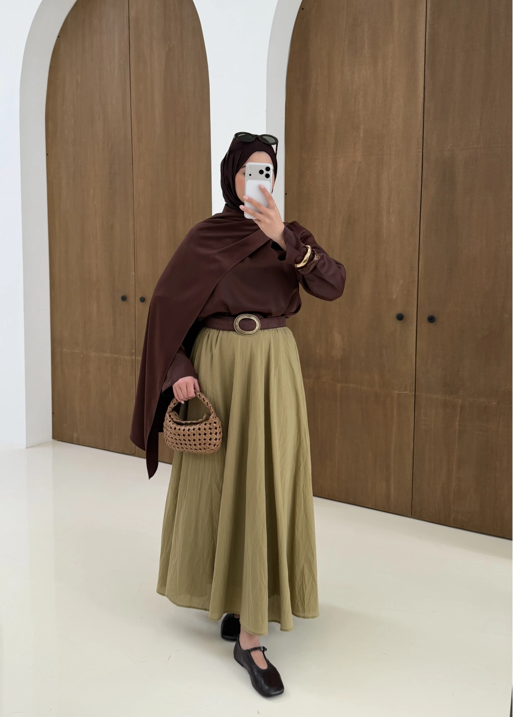 Saten Arabic Bluz Kahve
