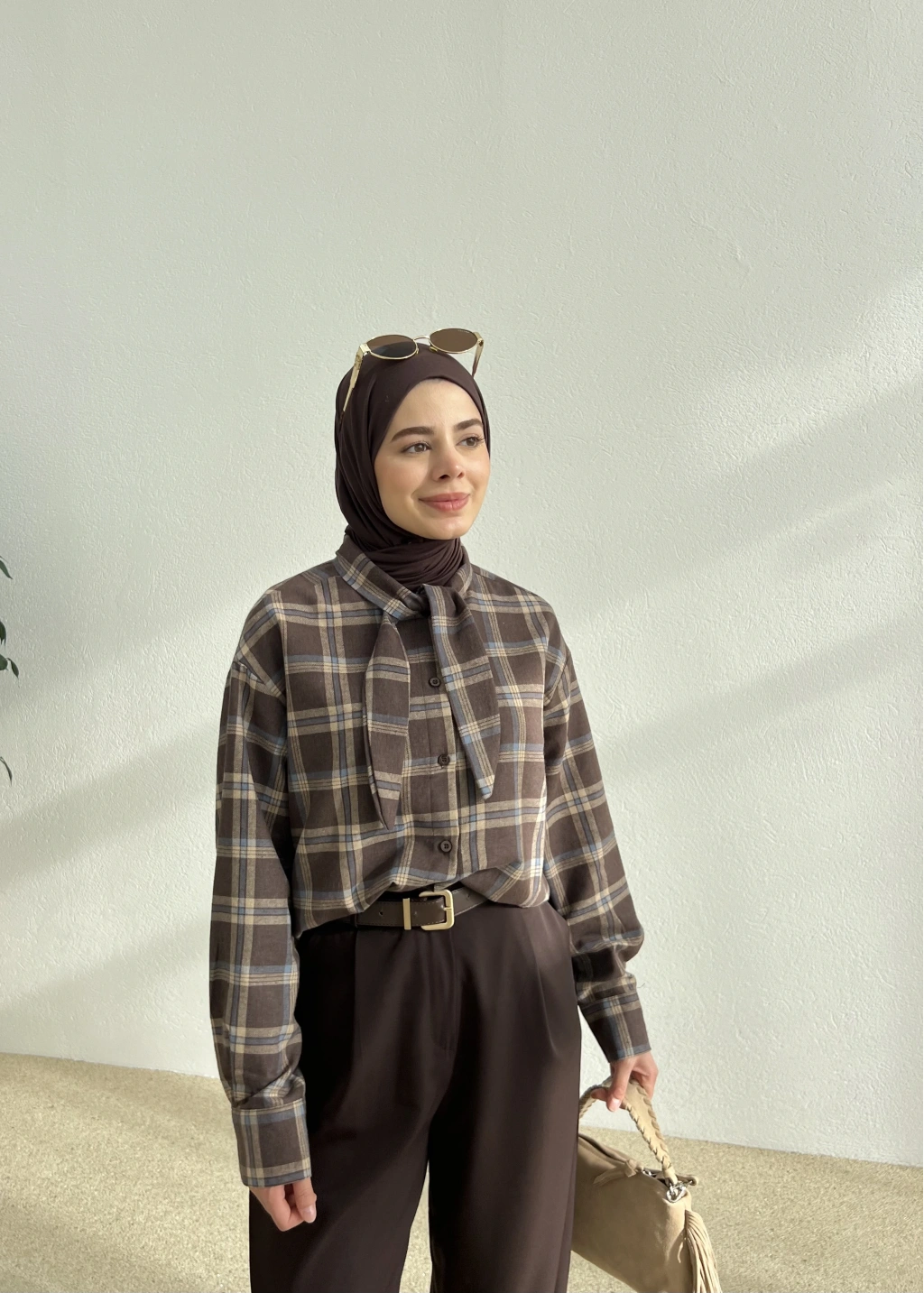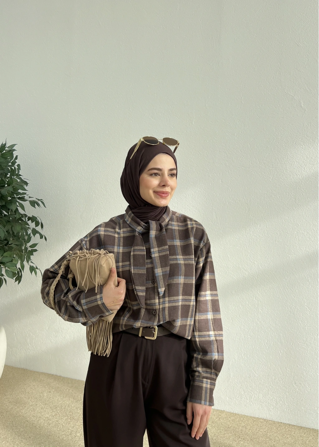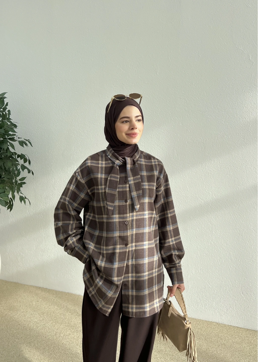 Zr Boyundan Bağlamalı Gömlek Kahve