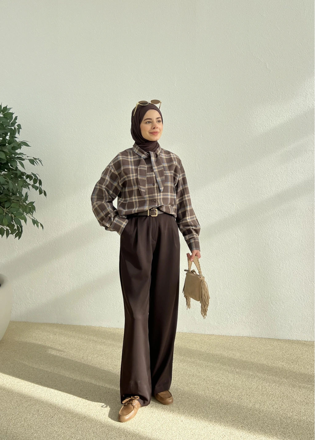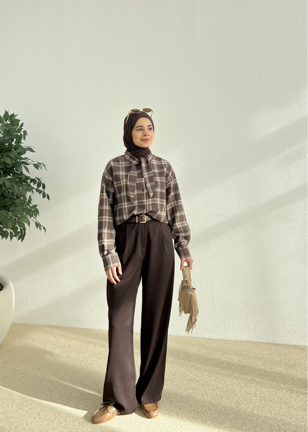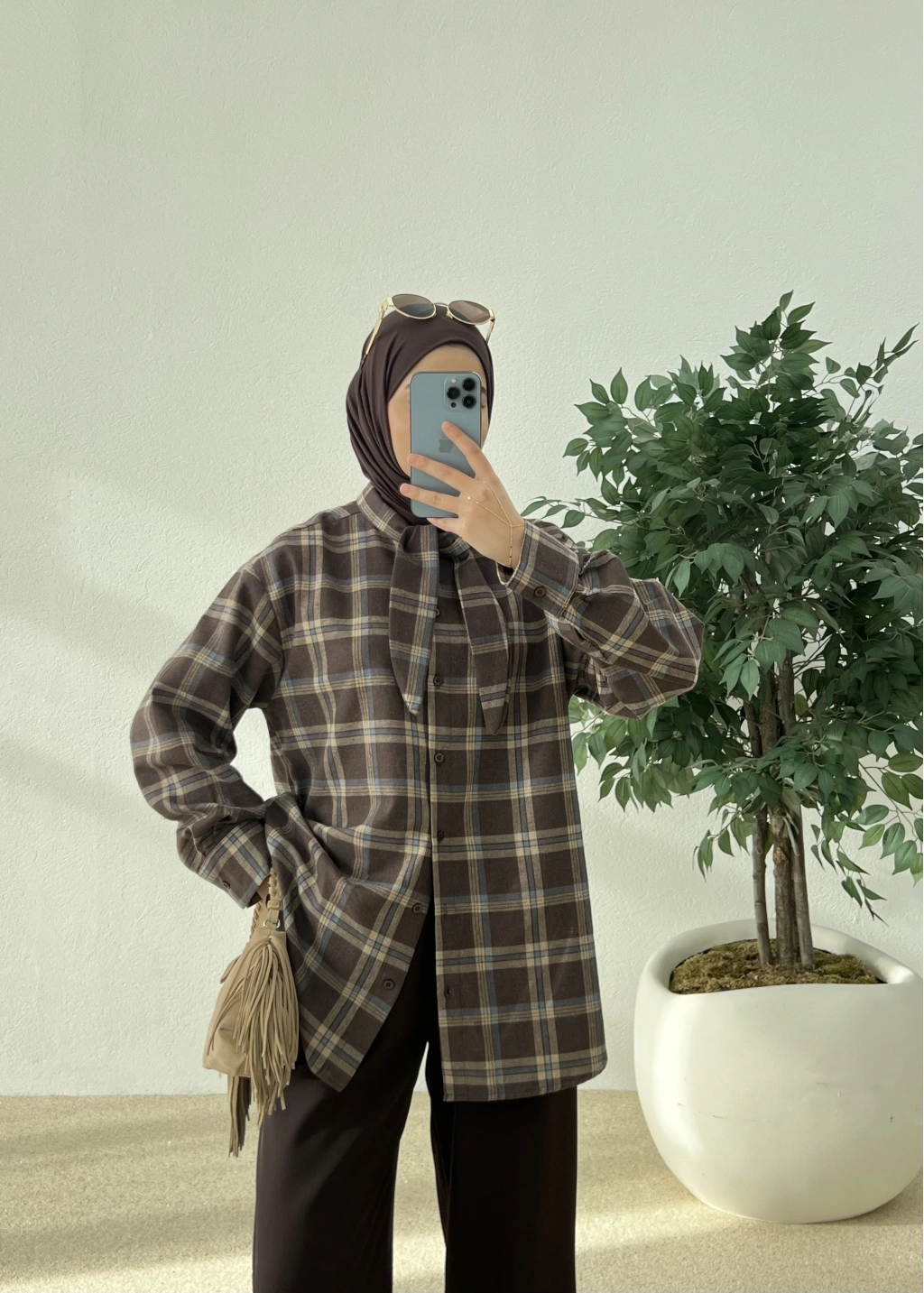 Zr Boyundan Bağlamalı Gömlek Kahve