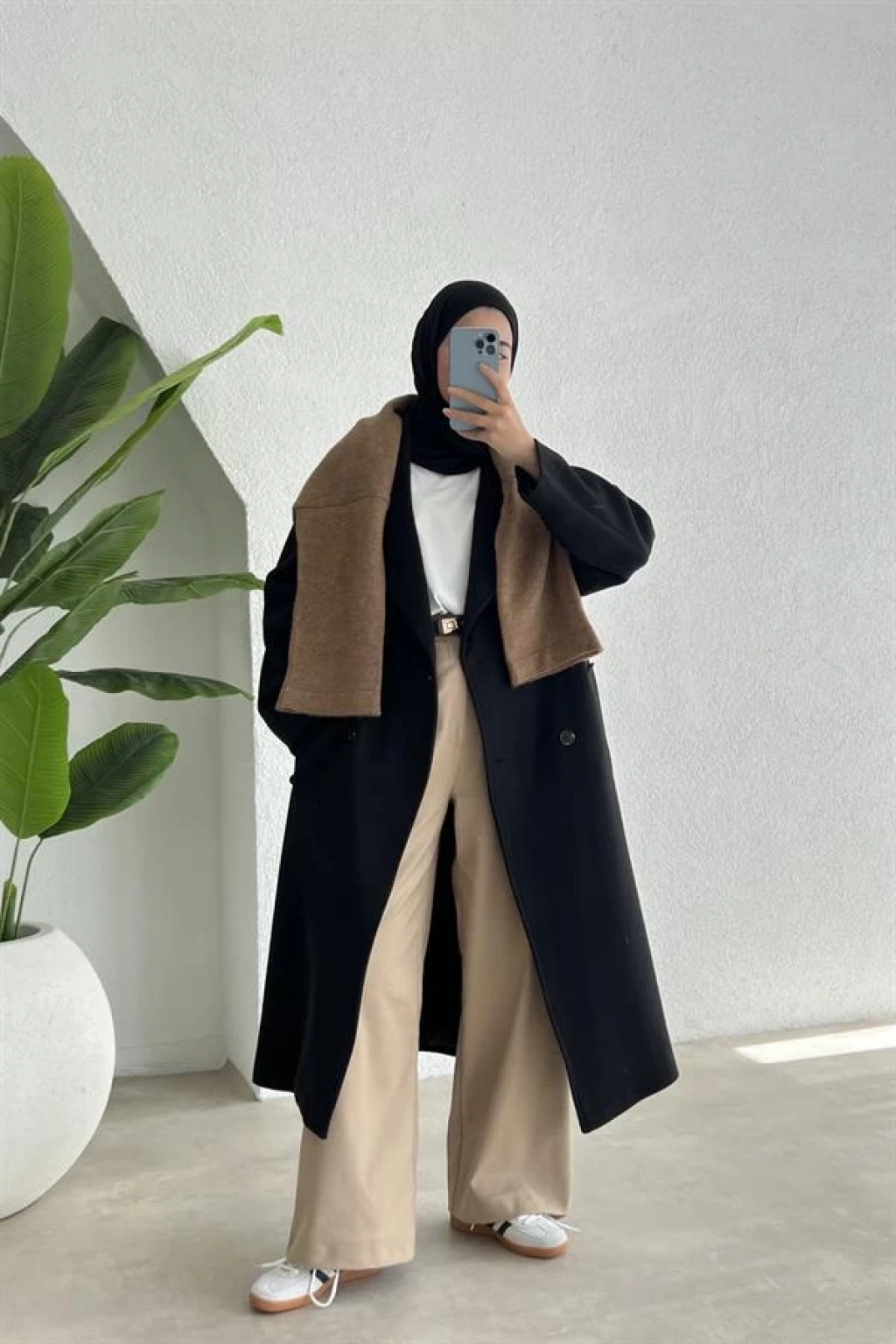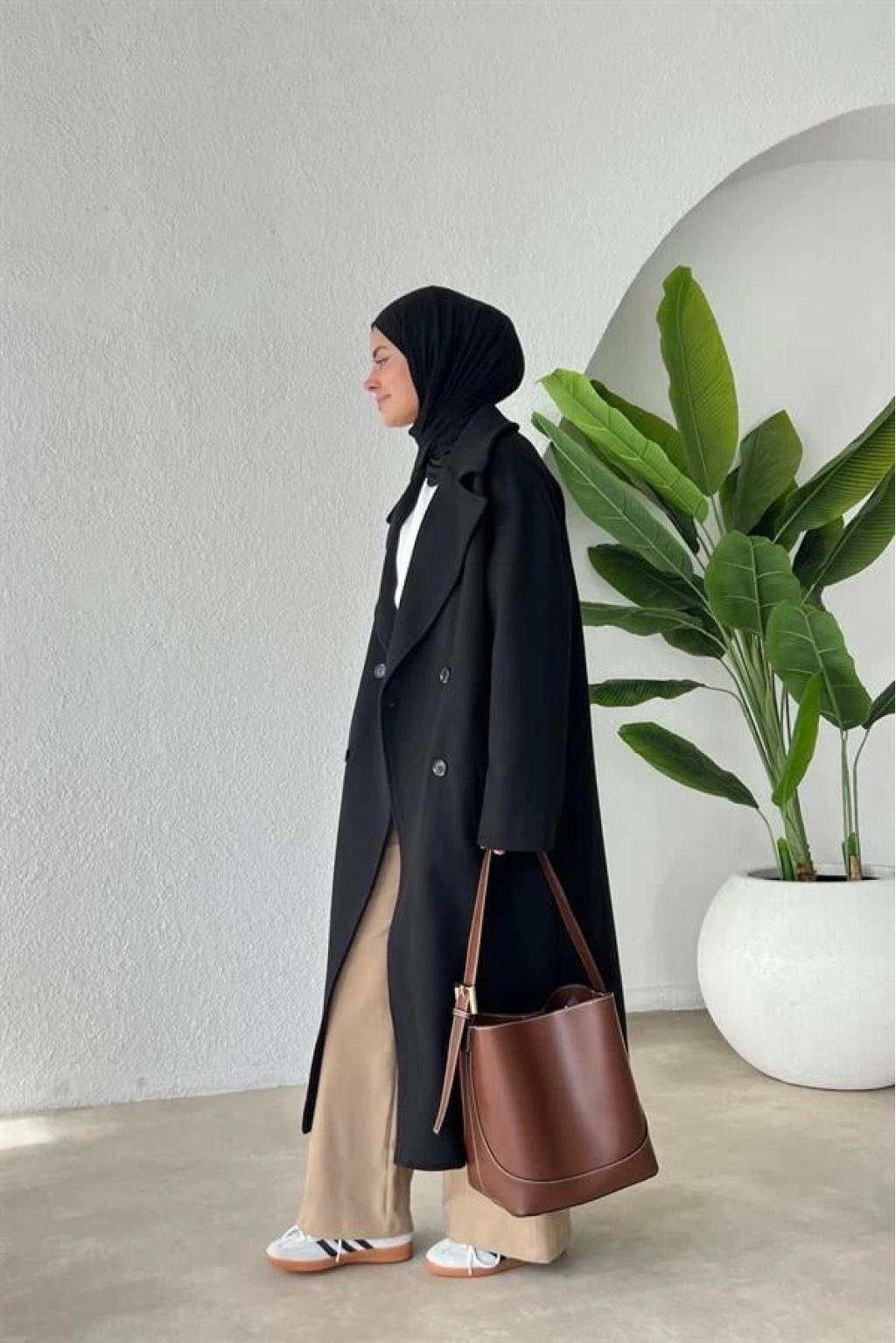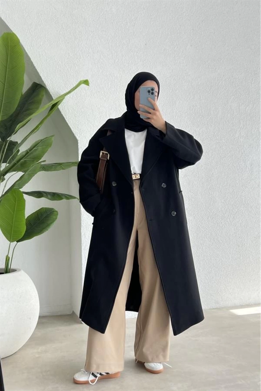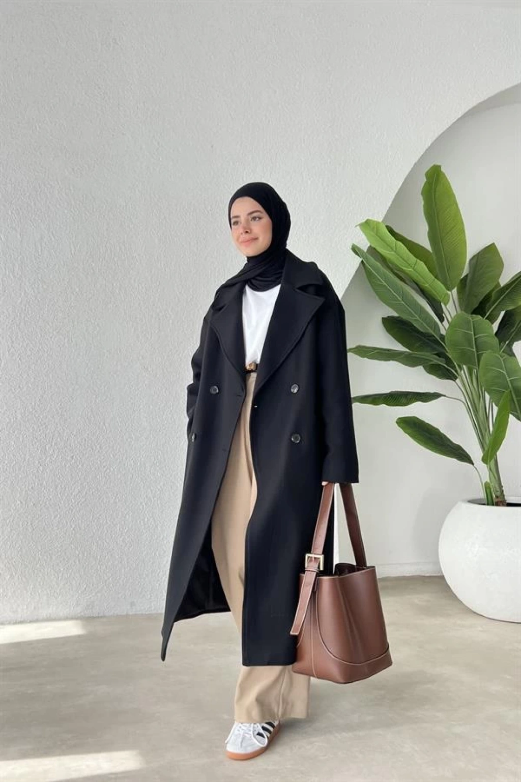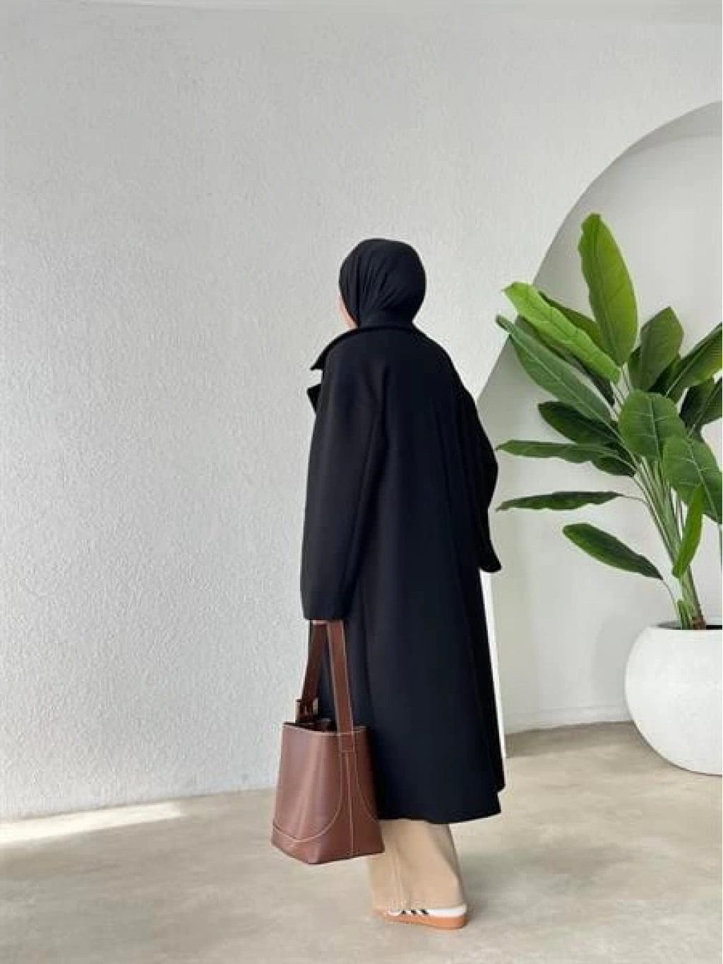 Zr Muadil Kaşe Kaban Siyah (dip Fiyat)
