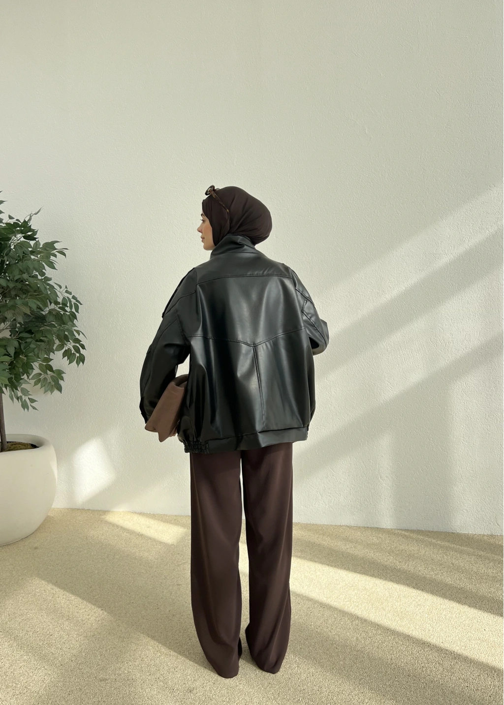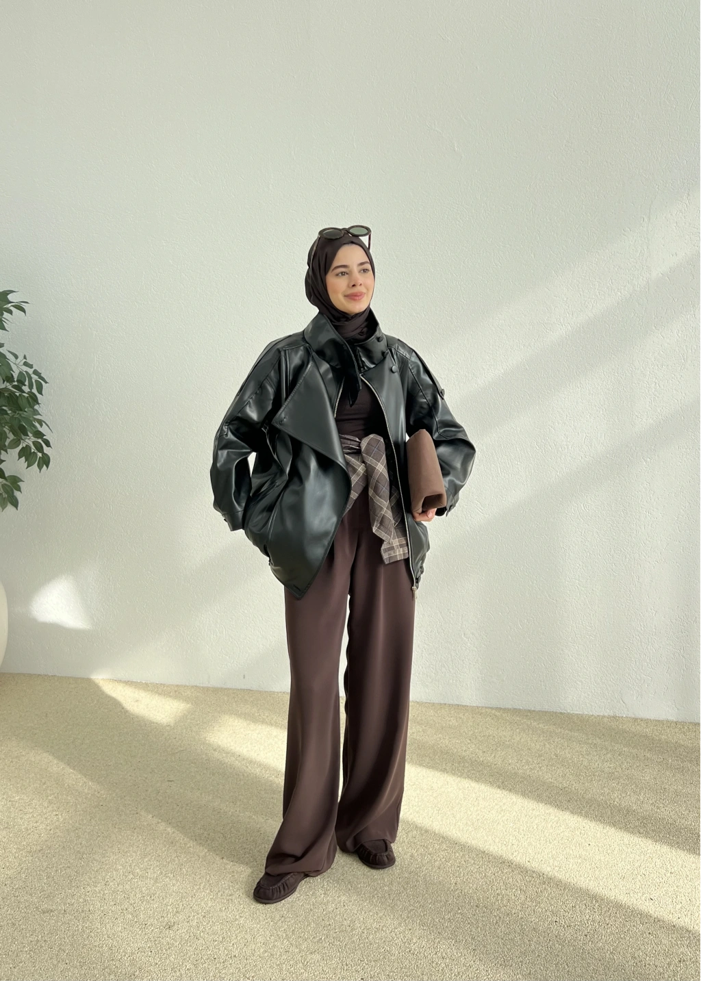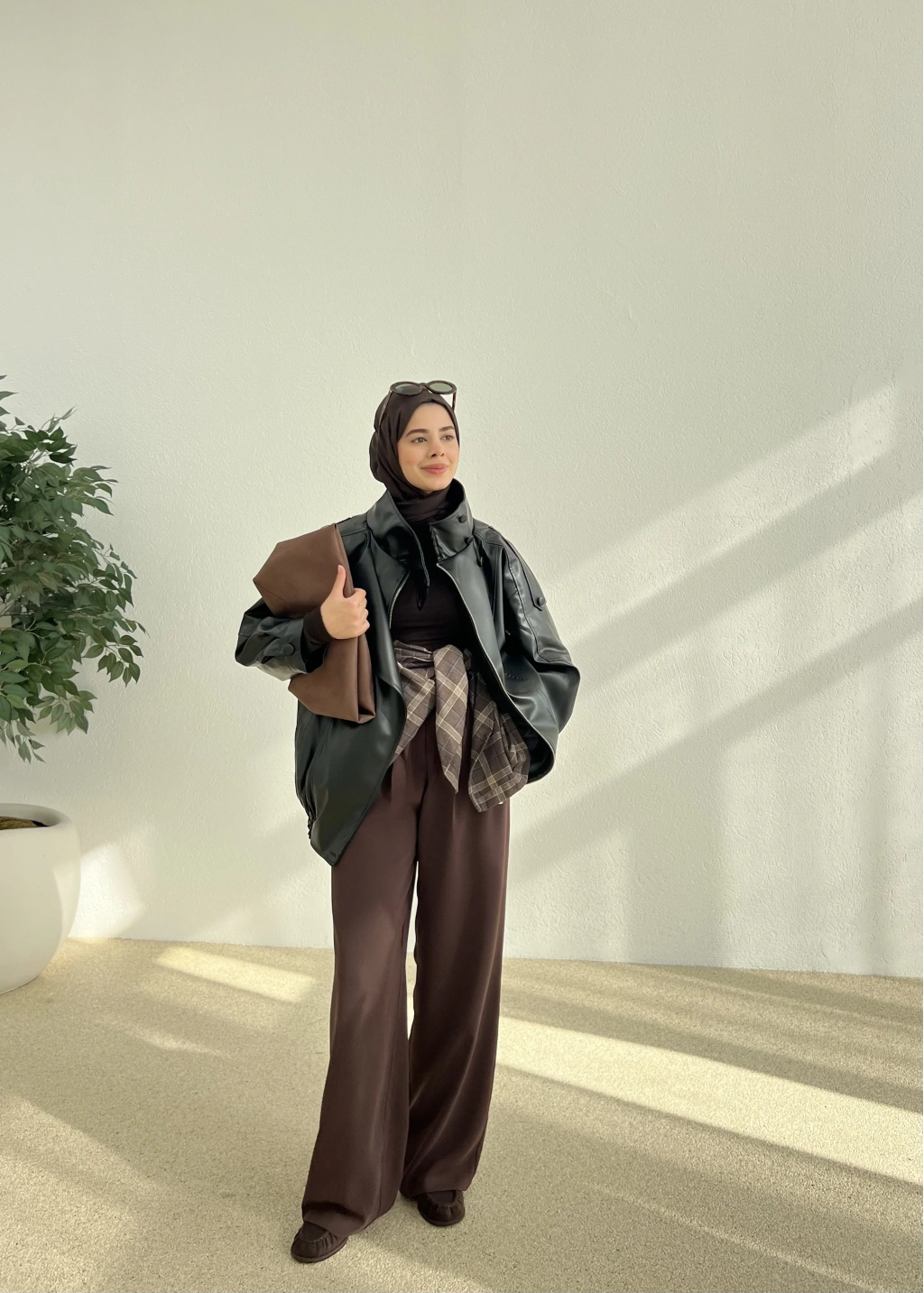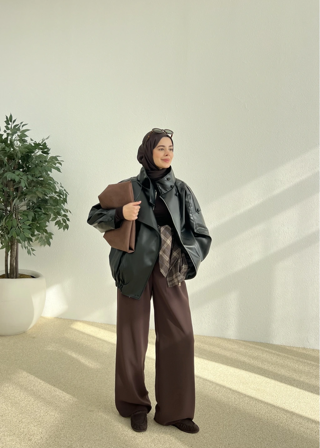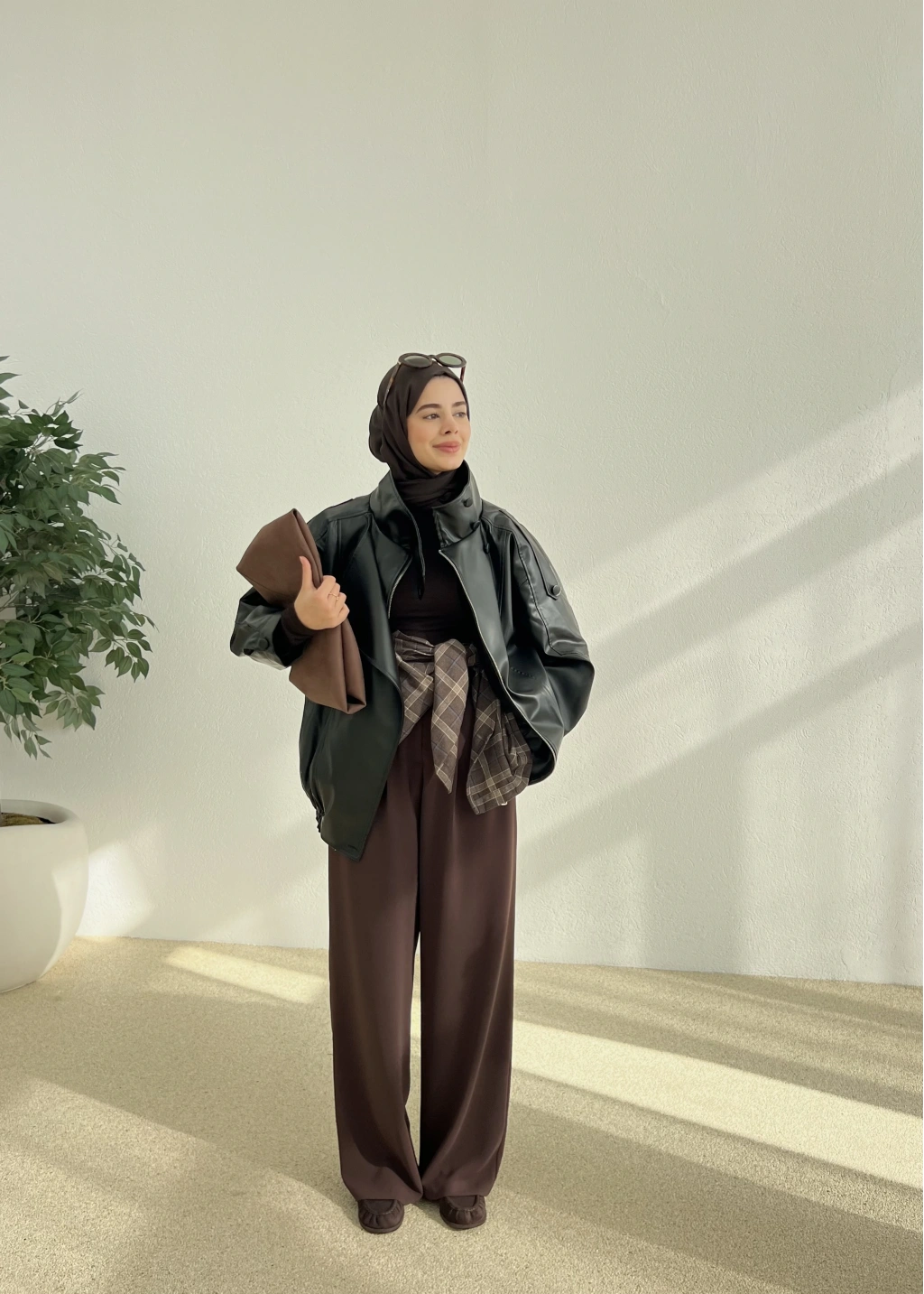 DÖKÜMLÜ KREP PALAZZO KOYU acı kahve